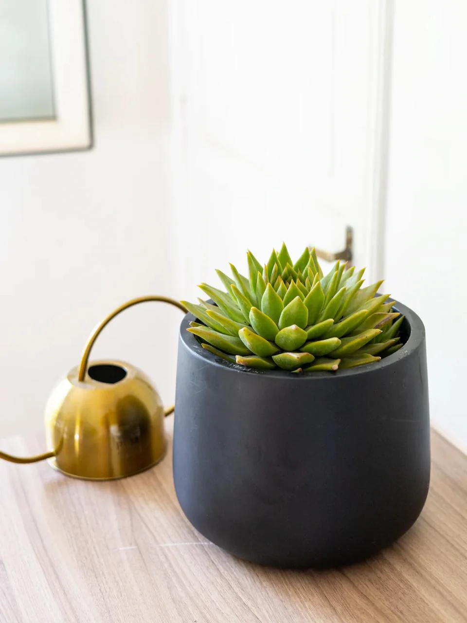 La Echeveria agavoides es una suculenta sin tallo que forma una roseta densa, generalmente solitaria, de hojas ovado-deltoides que se estrechan hasta una punta rígida y espinosa. La roseta puede alcanzar hasta 35 cm de diámetro, pero suele medir entre 7 y 15 cm. Las hojas son de color verde manzana con bordes que se tornan rojizos al exponerse a la luz solar intensa.